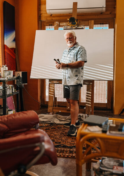 Graham Sanders’ artistic journey began with the sweep of a handmade Red Sable brush. He lettered signs and created murals that still grace streets and storefronts today. Over a 45-year career, his hands have crafted everything infused with colour, emotion, and a deep sense of place. His distinctive use of acrylics and precise, linear brushwork brings to life seascapes, mountains, and wildlife in ways that feel both interpretive and timeless.