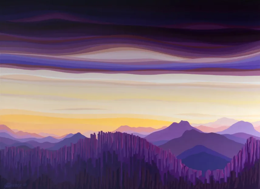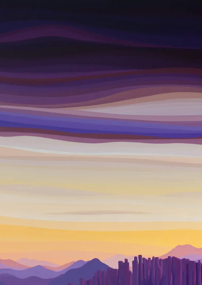 Acropolis Twilight Twilight washes dolomite peaks in pink and purple. The scene blends grandeur with quiet awe.