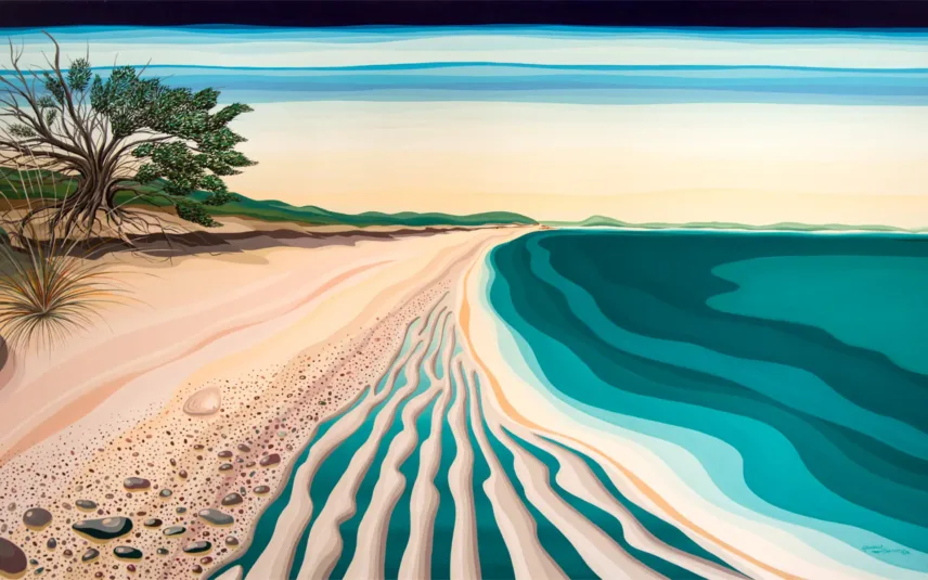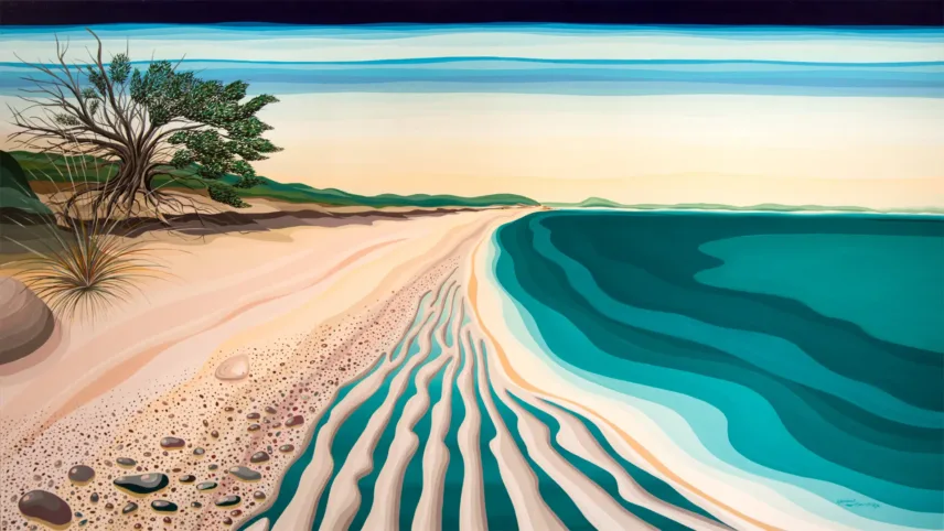 American Beach, Kangaroo Island Soft sands and layered dunes meet vivid skies. The painting radiates harmony and joy.