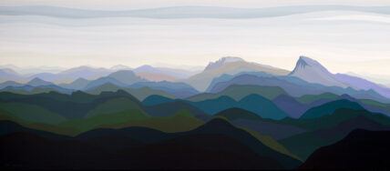 Soft layers of colour trace mountains waiting for winter’s touch. The scene reflects the stillness before frost settles in.