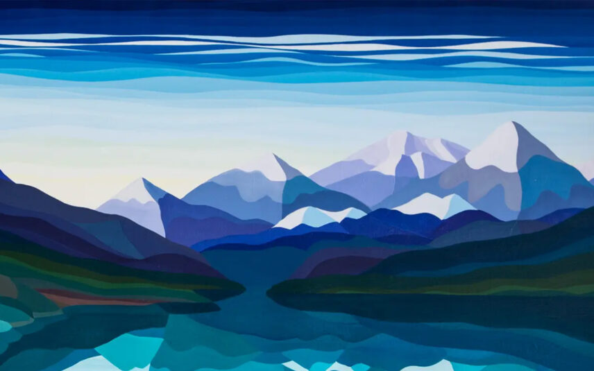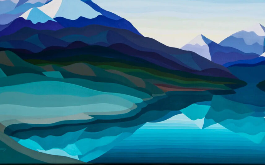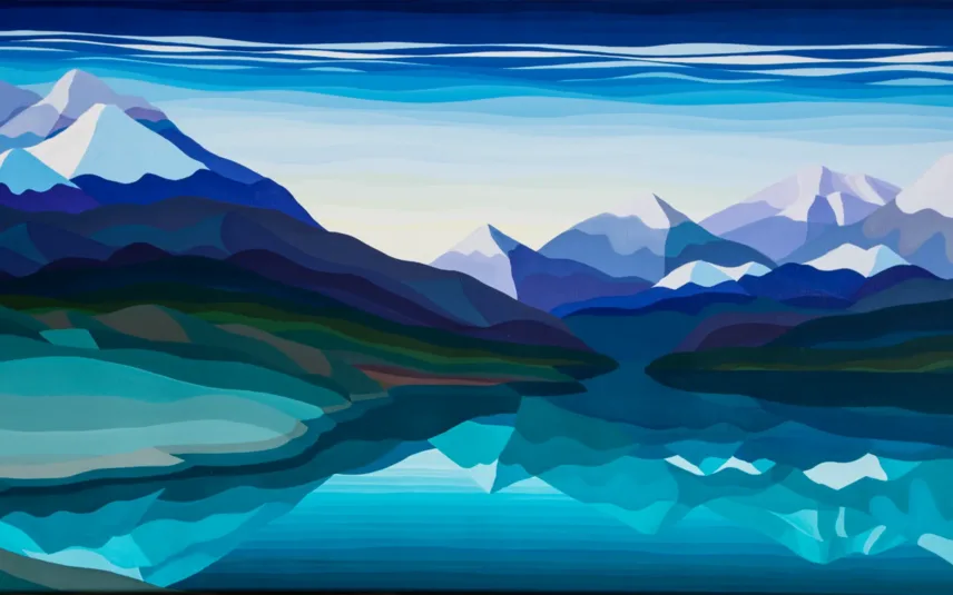 Oh Canada Snow-capped peaks reflect in a glassy lake. Bold brushstrokes capture the quiet grandeur of the Canadian Rockies.
